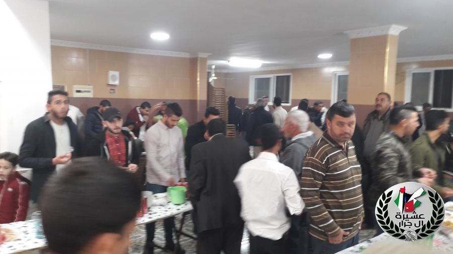 حيث أقام أهل العريس وليمة في قرية الهاشمية مستقبلين المهنئين في رحاب ديارهم العامرة مُراعين مشاعر أبناء عمومتهم ذوي الشهداء و الأسرى بالاكتفاء بالوليمة .