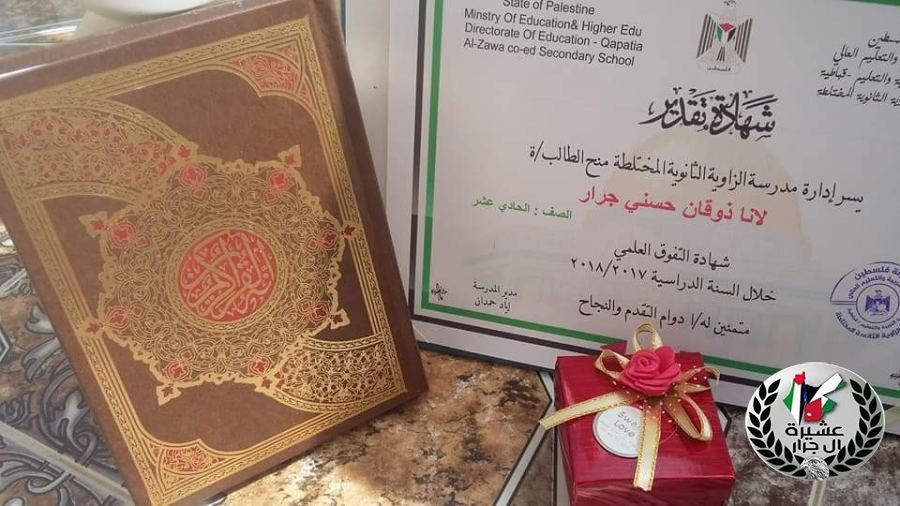 نهنئ بنت العم صابرين صبري حمد جرار بمناسبة تكريمها من اوائل كلية الدراسات العليا في جامعة النجاح الوطنية